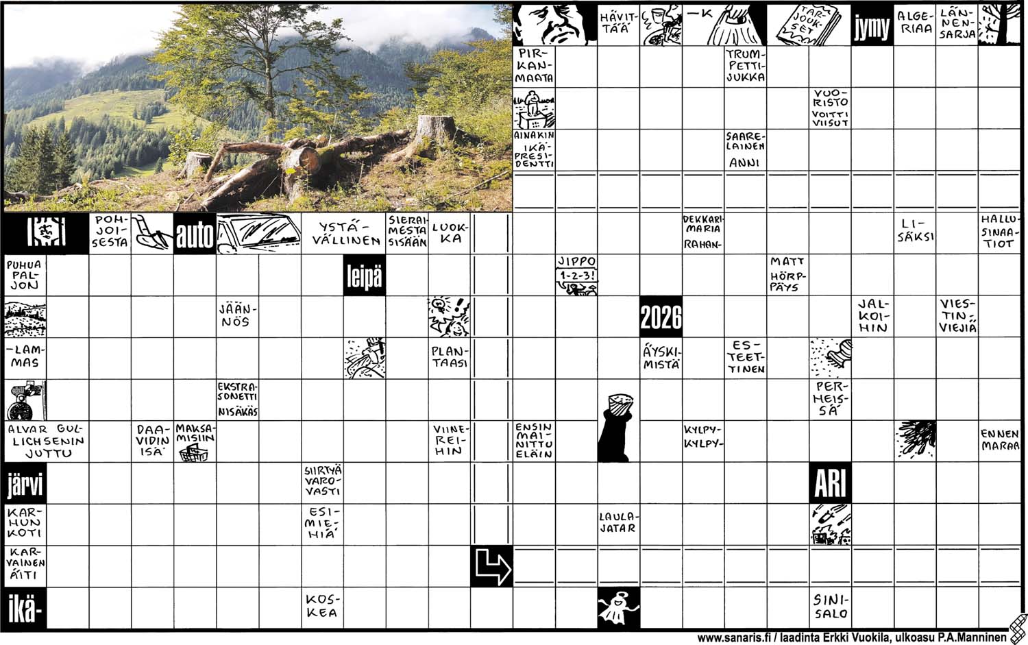 Metsälehti 15/25Tyyppi: kryptoVaikeustaso: helppo/kesk. Laatija: Erkki Vuokila Piirtäjä: Erkki Vuokila |