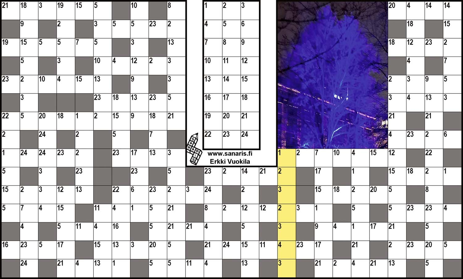 Metsälehti 23/25Tyyppi: kryptoVaikeustaso: helppo/kesk. Laatija: Erkki Vuokila Piirtäjä: Erkki Vuokila |